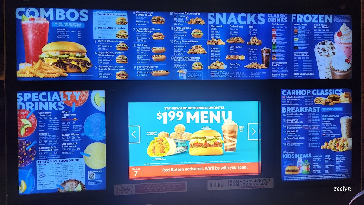 Sonic Drive-In serves a nostalgic yet flavorful fast-food experience rooted in classic American favorites. Their menu shines with the iconic SONIC® Cheeseburger, featuring 100% pure beef patties, melted American cheese, crisp pickles, fresh lettuce, and ripe tomatoes, all layered with a choice of tangy mustard, mayo, or ketchup. For a heartier appetite, the SuperSONIC® Double Cheeseburger doubles down on these bold flavors.